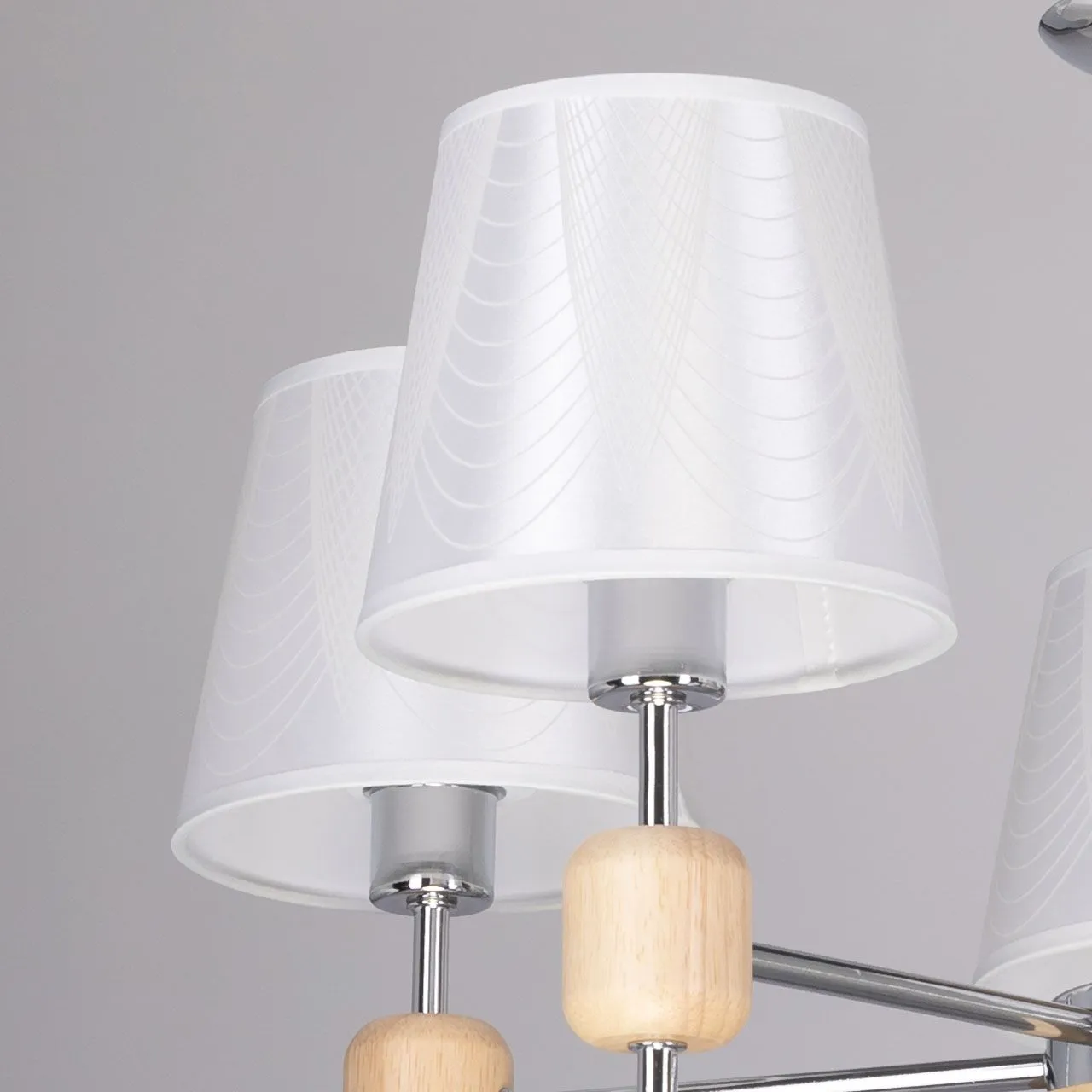 Основание/ металл/ хром Абажур/ текстиль, акрил/ белый, прозрачный Декор/ дерево/ натуральный