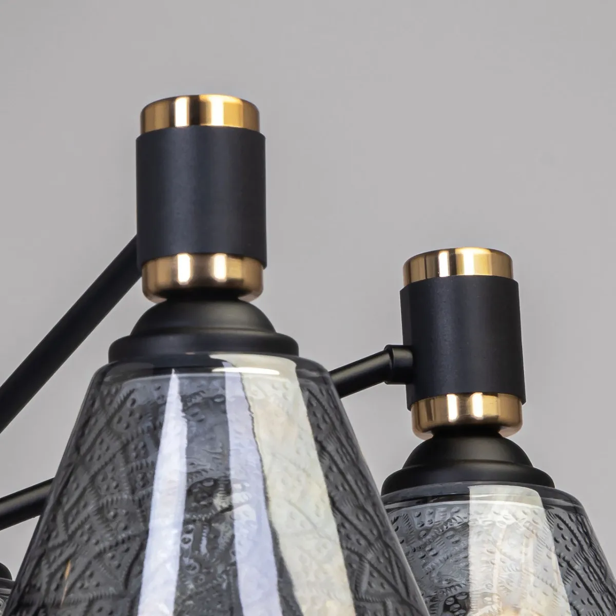 Основание/ металл/ черный, золото Плафон/ стекло/ дымчатый металлик
