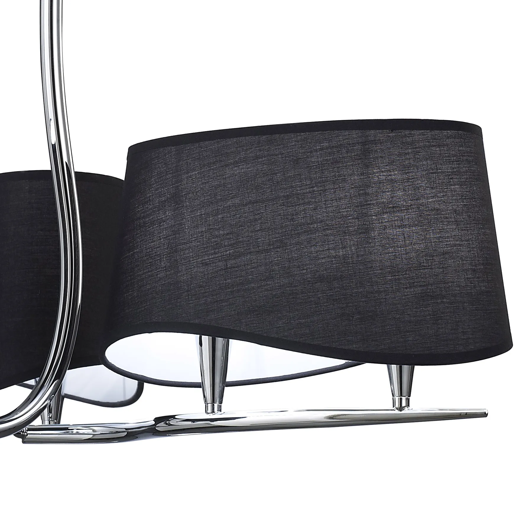 коллекция доступна в полированном хроме или античной латунной отделке, а оттенки абажура могут быть черными или кремовыми в зависимости от цветовой гаммы вашего интерьера.