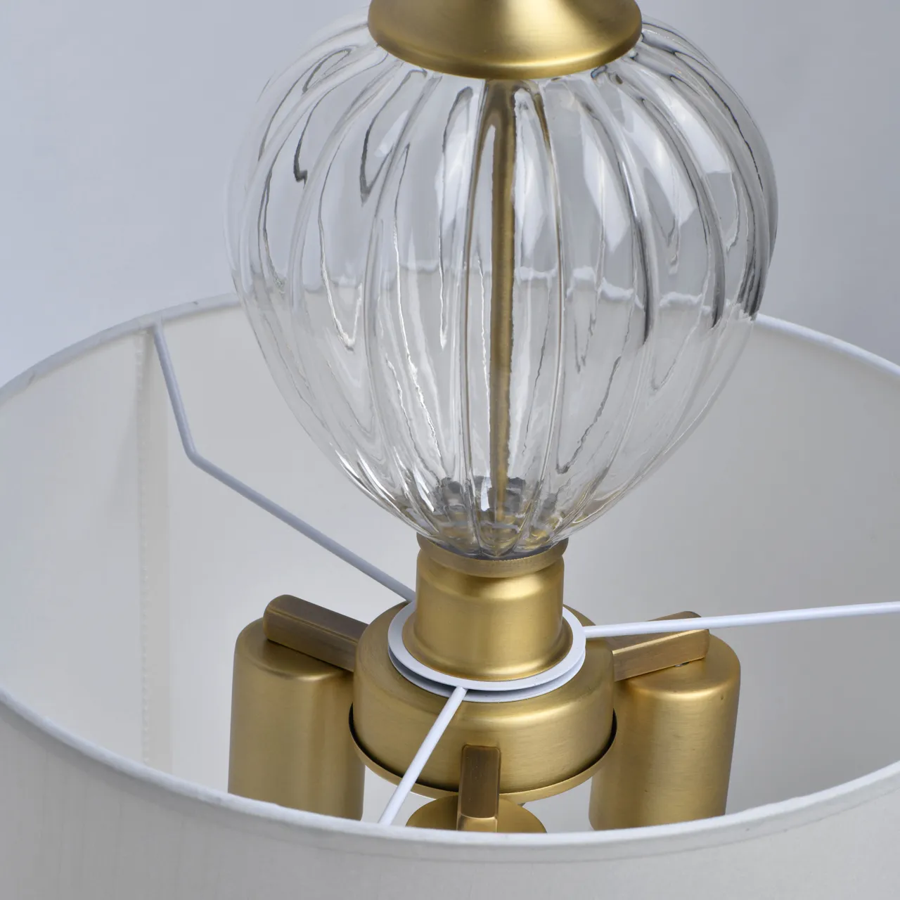 Основание/металл/латунь Абажур/текстиль/белый Декор/стекло